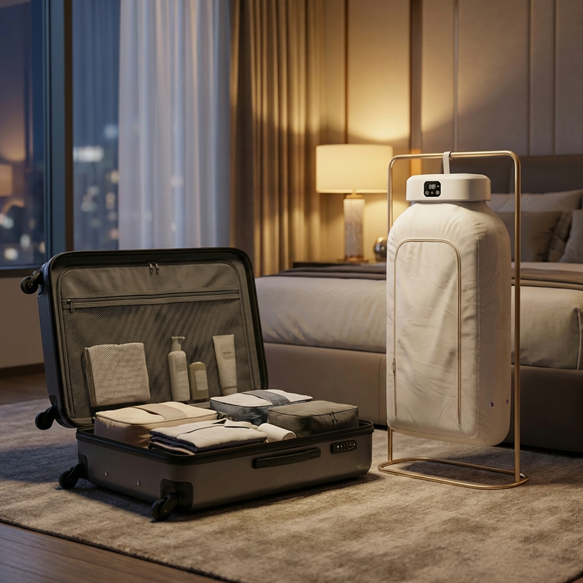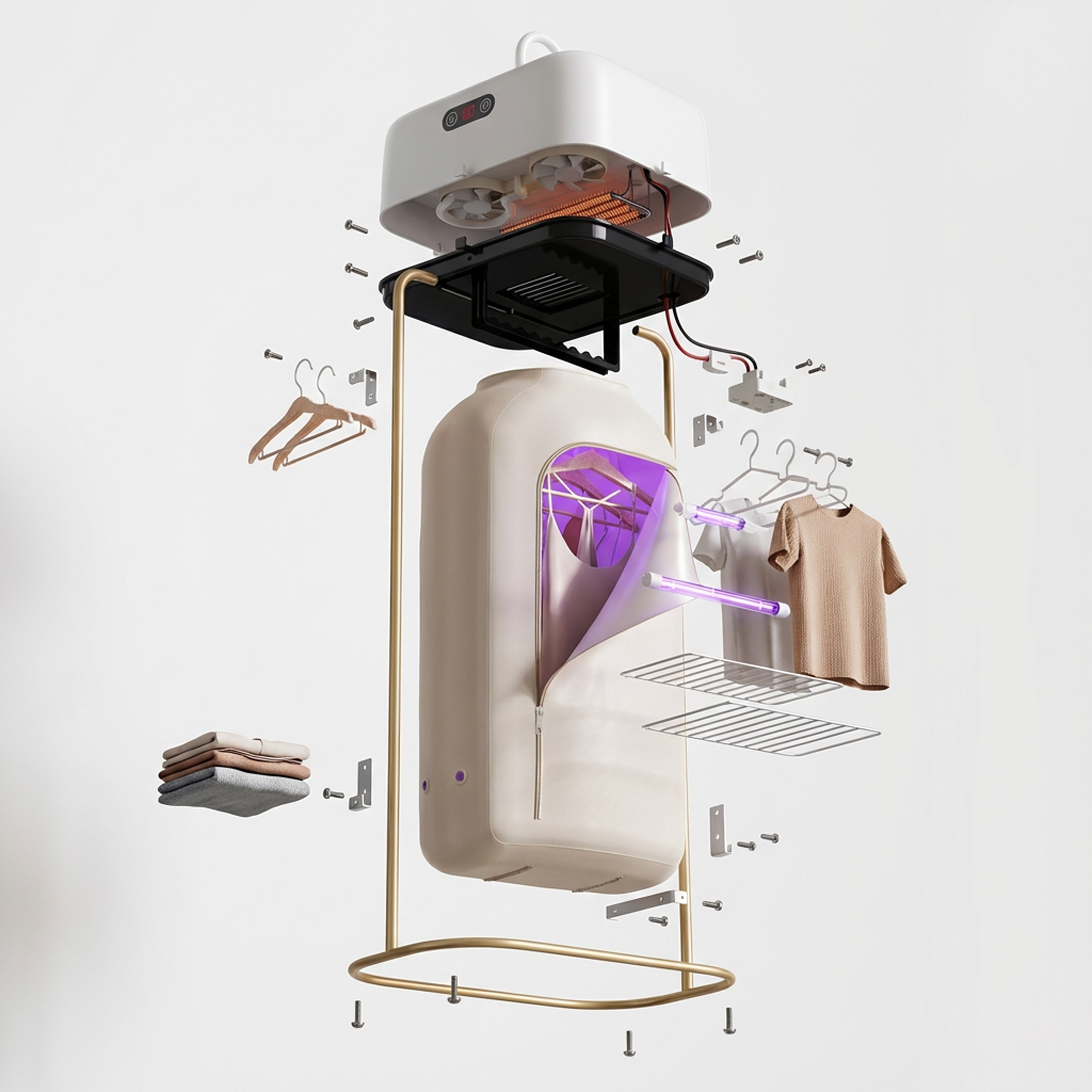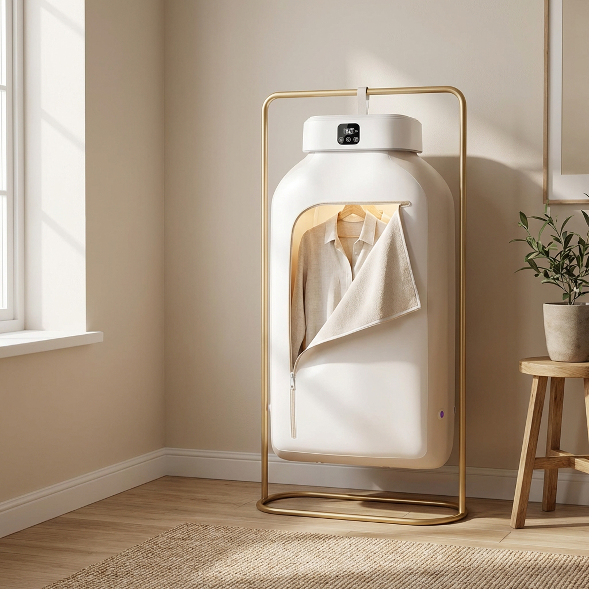 انسَ الأجهزة الكبيرة والمساحات الضيقة. مع جهاز تجفيف الملابس المحمول، تقدر تنشف ملابسك بسرعة وكفاءة بدون ما تحتاج مجفف تقليدي أو مكان مخصص.
